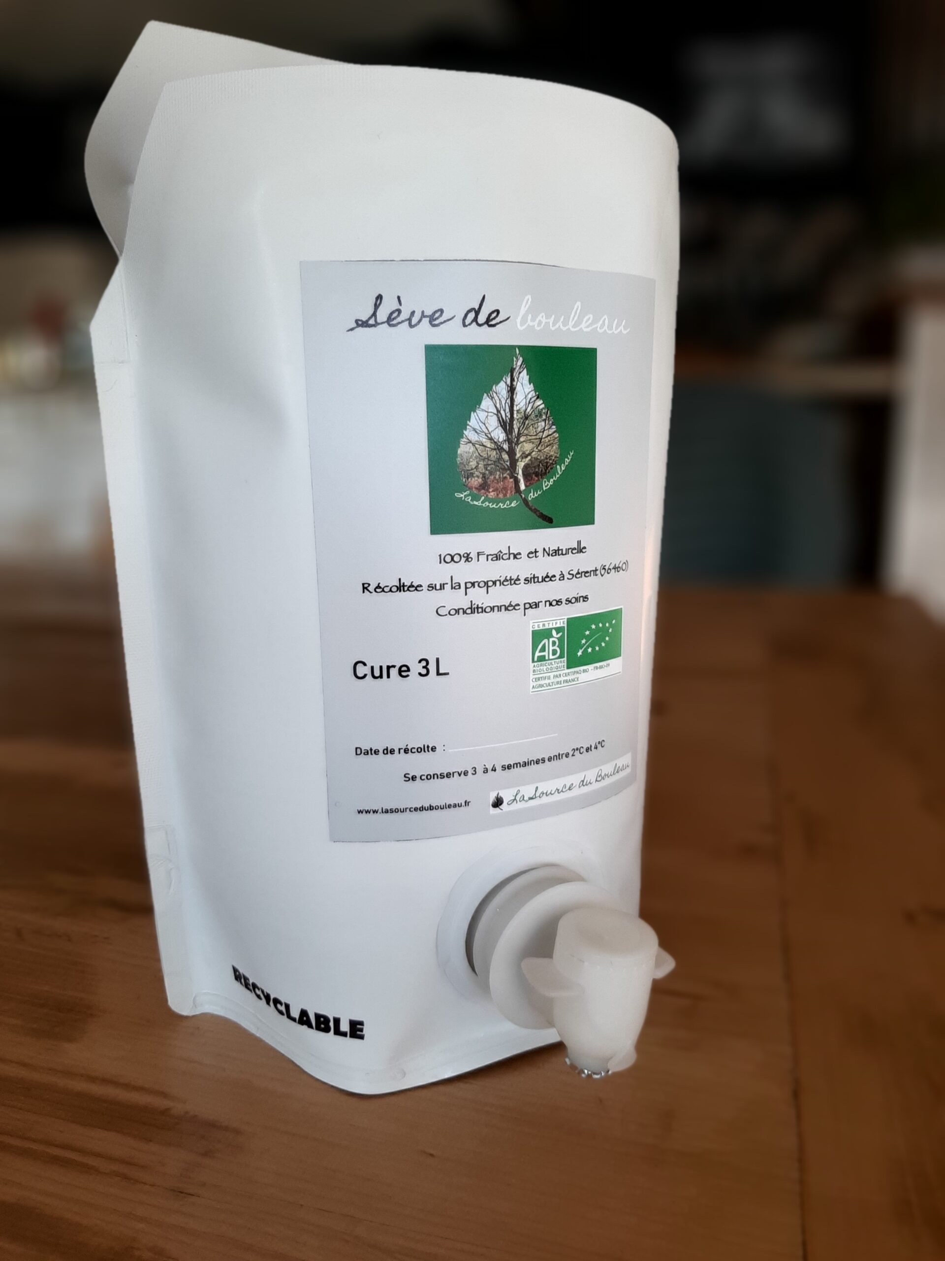 « La sève de bouleau est le liquide translucide à peine trouble qui s'écoule de l'arbre lorsqu'on coupe une branche. C'est la sève qui nourrit le tronc, les branches, les feuilles, les fleurs, les fruits du bouleau. C'est de ce liquide vital que nous parlons ici, originel, non traité d'aucune manière, tel qu'il sort de l'arbre. Pour la récolter, on fore un petit trou dans le tronc, dans lequel on introduit un petit tuyau par lequel elle s'écoule lentement dans un bidon. Elle a la saveur d'une eau très légèrement sucrée. »